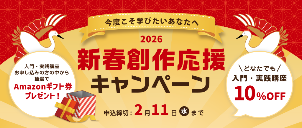 公募スクールでは、2月11日(水)まで、『新春創作応援キャンペーン』を開催します!